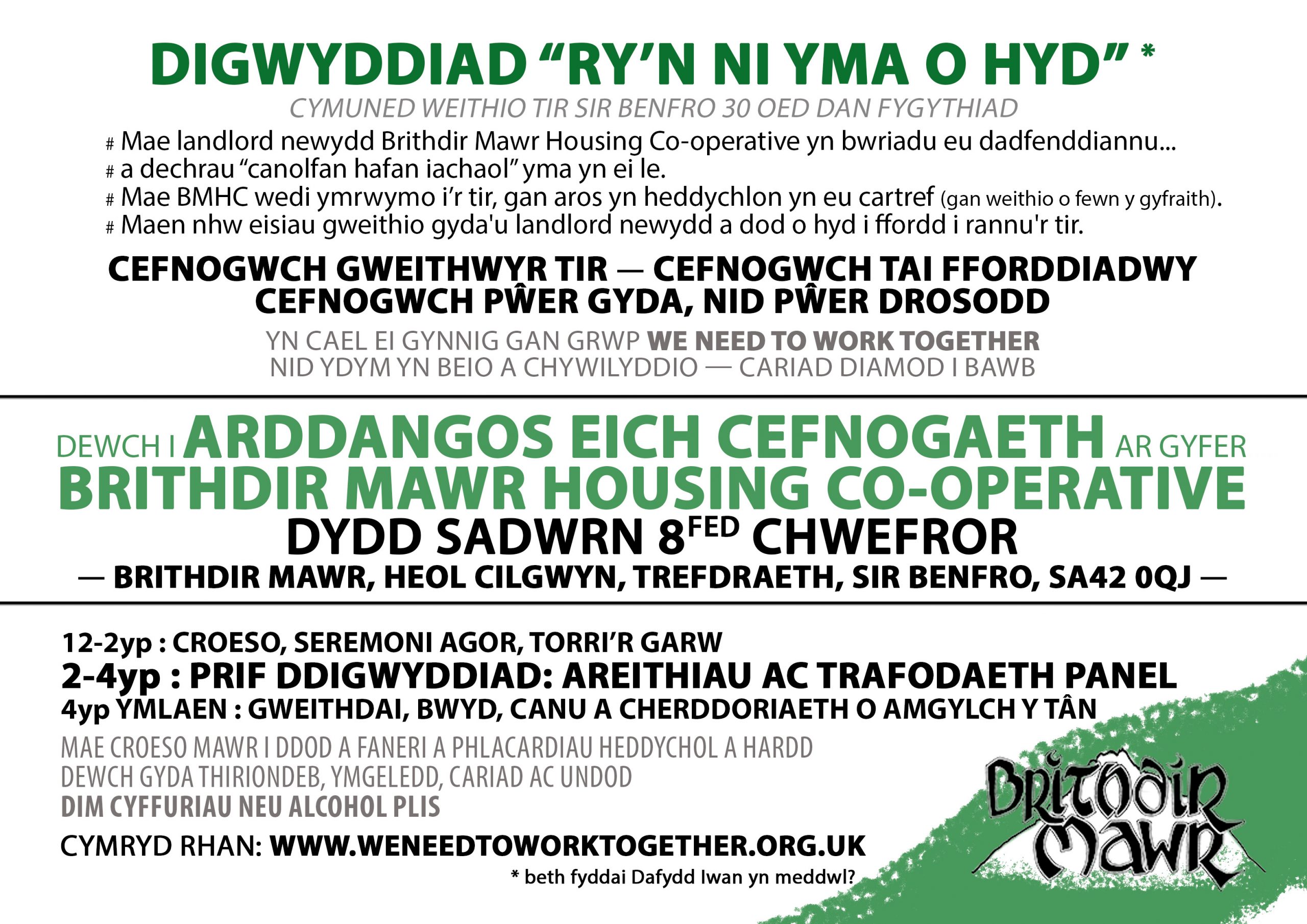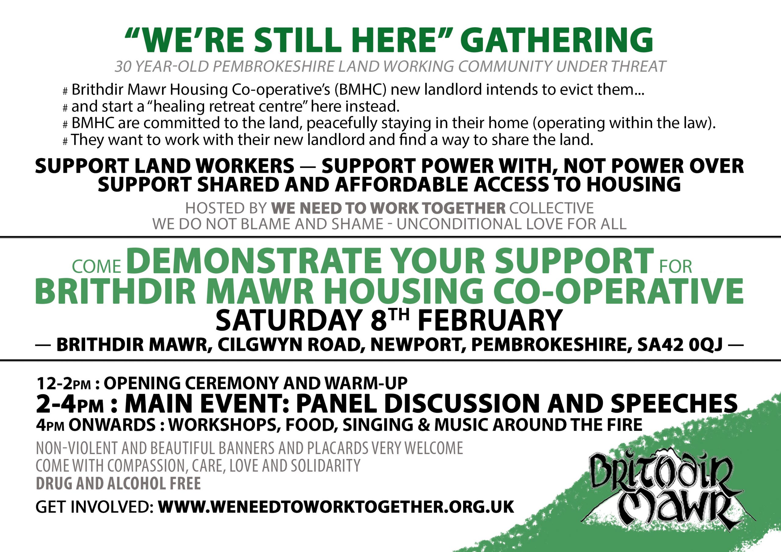 A new movement called WE NEED TO WORK TOGETHER has launched. Working in support of radical change at Brithdir Mawr and beyond, WE NEED TO WORK TOGETHER aims to: