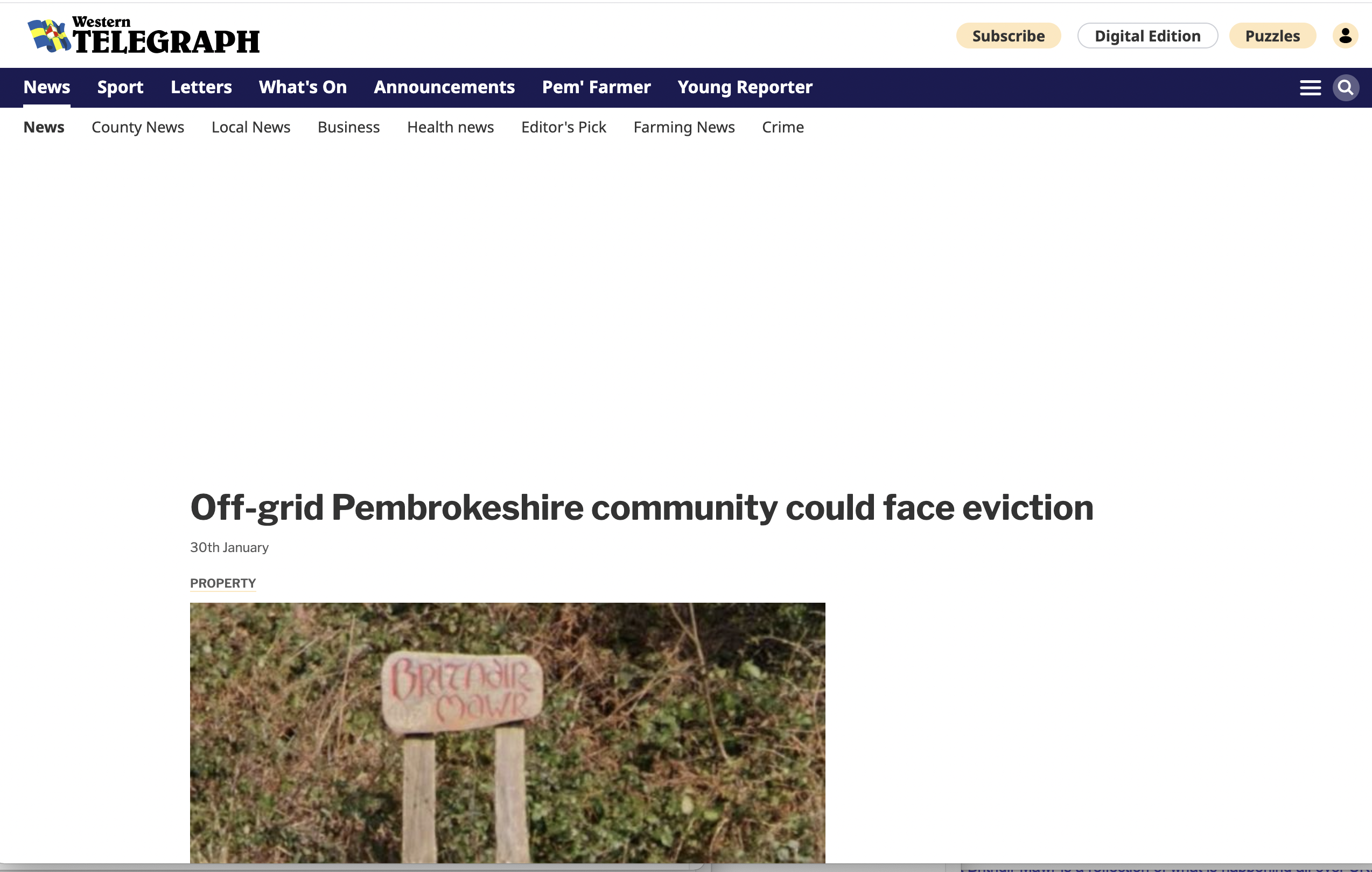 “Off-grid Pembrokeshire community could face eviction.” Read the full article here.